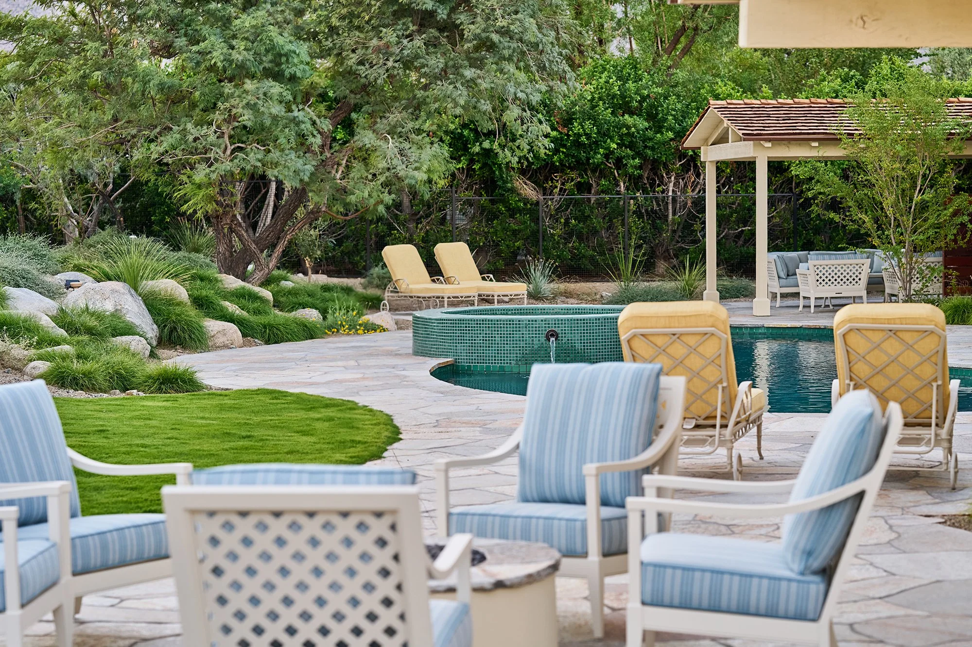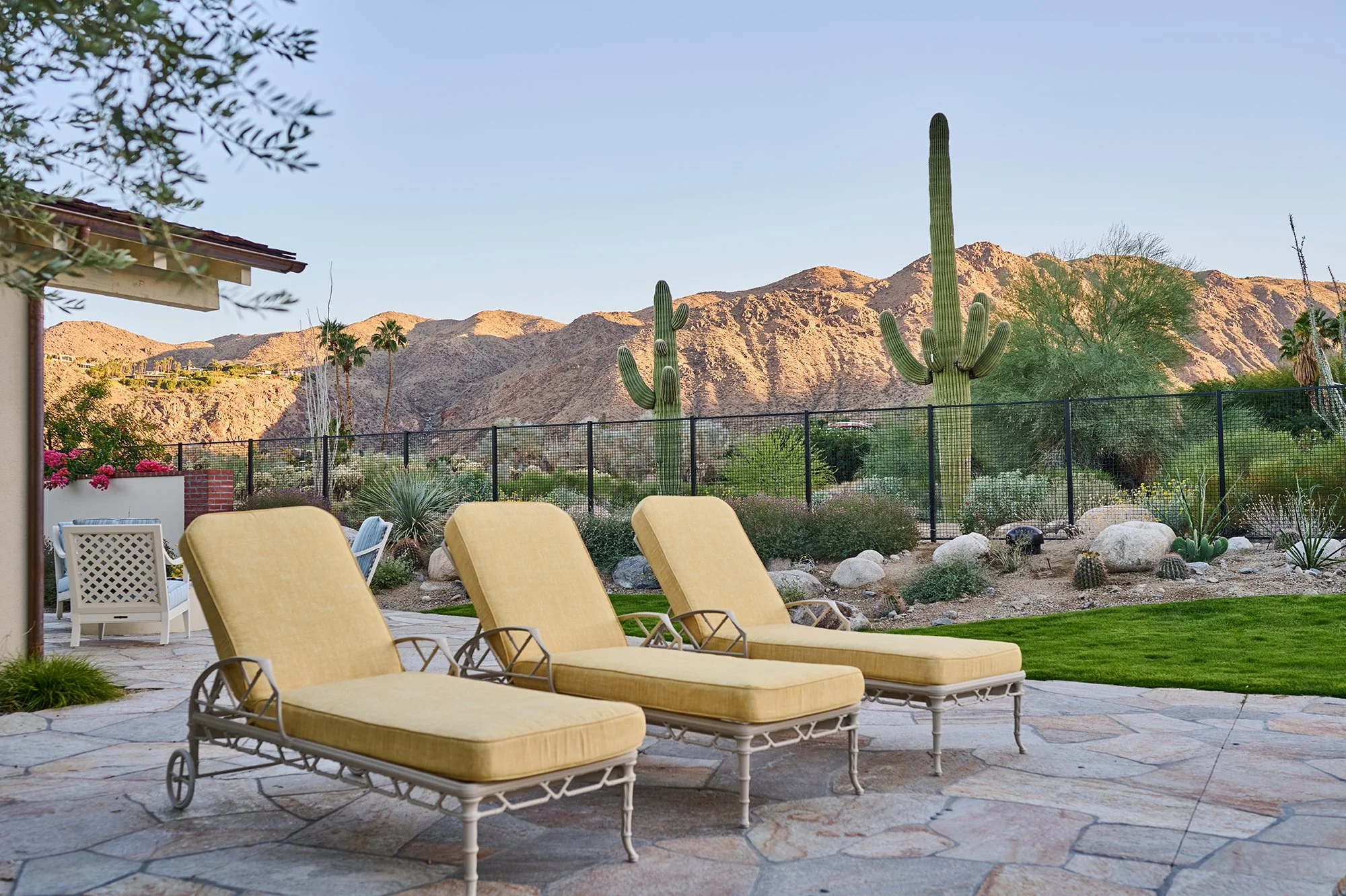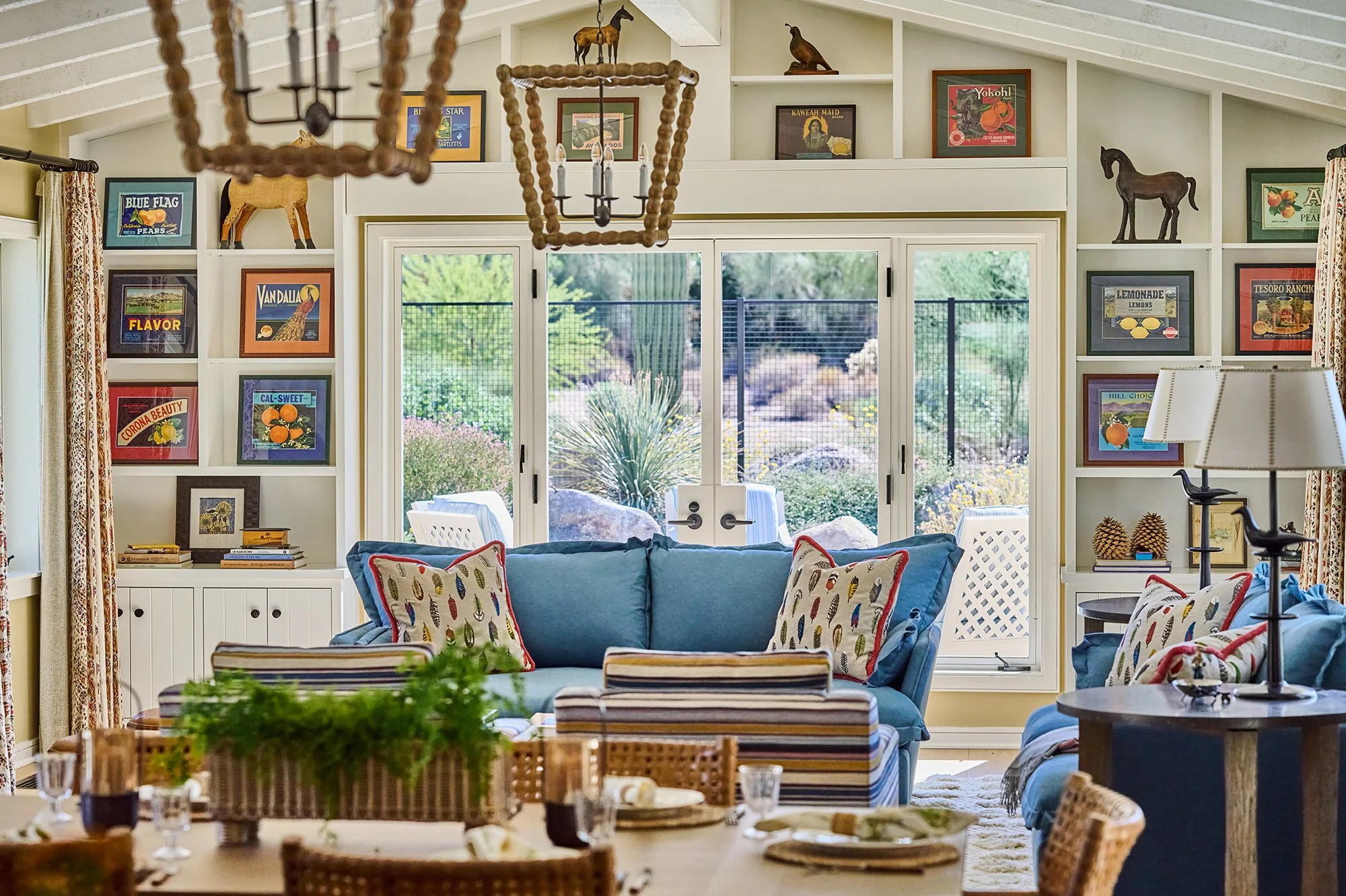 Inspired by Smoke Tree Ranch’s 1930s roots, vintage fruit crate graphics, and the surrounding desert flora and fauna, the palette leans into warm neutrals with subtle pattern and texture. Guest rooms introduce moments of color, echoing the desert landscape beyond the walls.