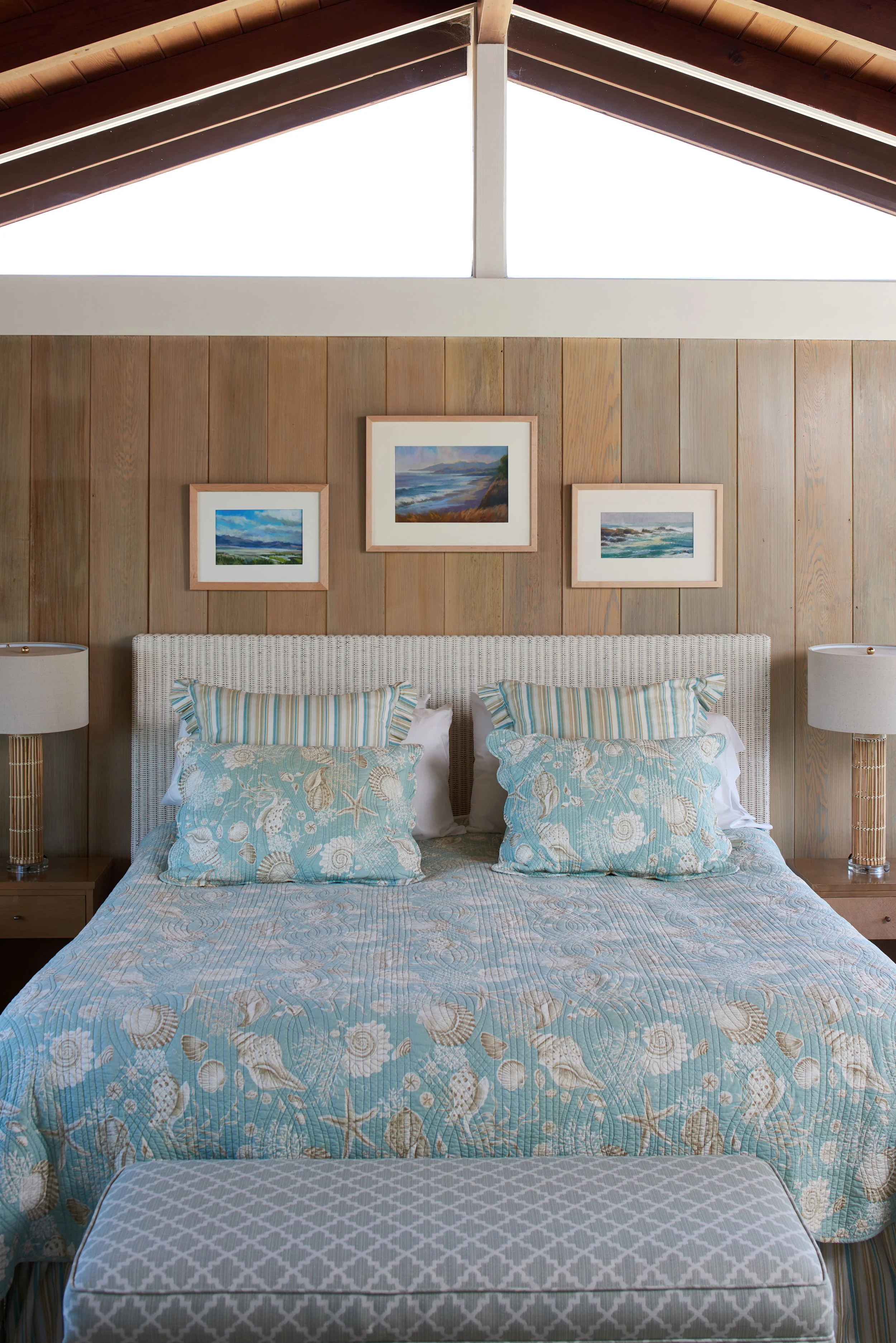 PALETTE | As a beachfront property, Emily leaned the palette toward blues, greens and neutrals to play with the warm wood paneling and crisp white moldings throughout the homes. Emily took color inspiration from the Carpinteria Salt Marsh Reserve and surrounding natural elements.